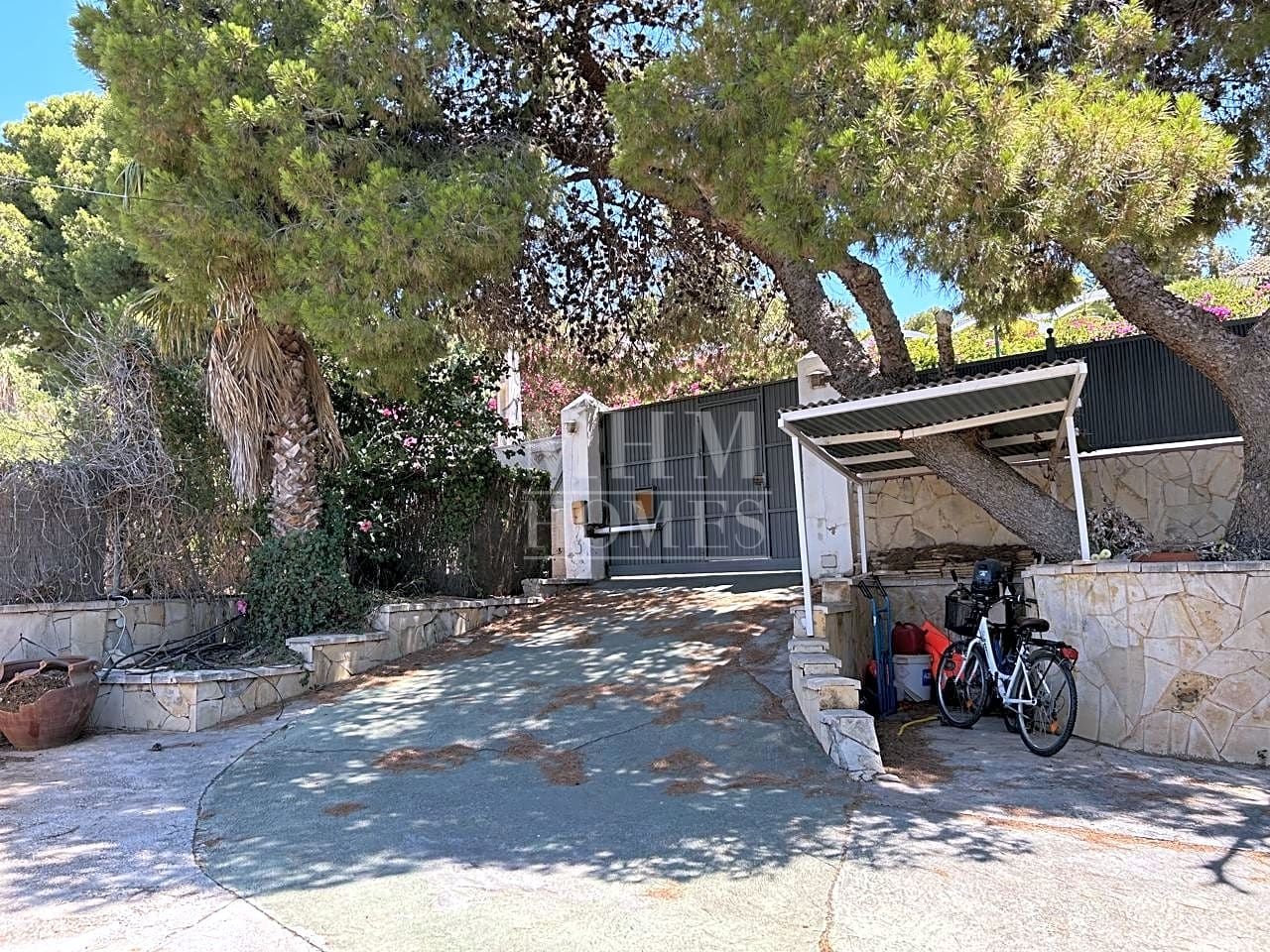 La parcela se orienta de norte a sur y cuenta con pendiente , cuenta con frondosos pinos, y dispone de una zona a la entrada destinada a aparcamientos y con amplia zona de rodadura.
