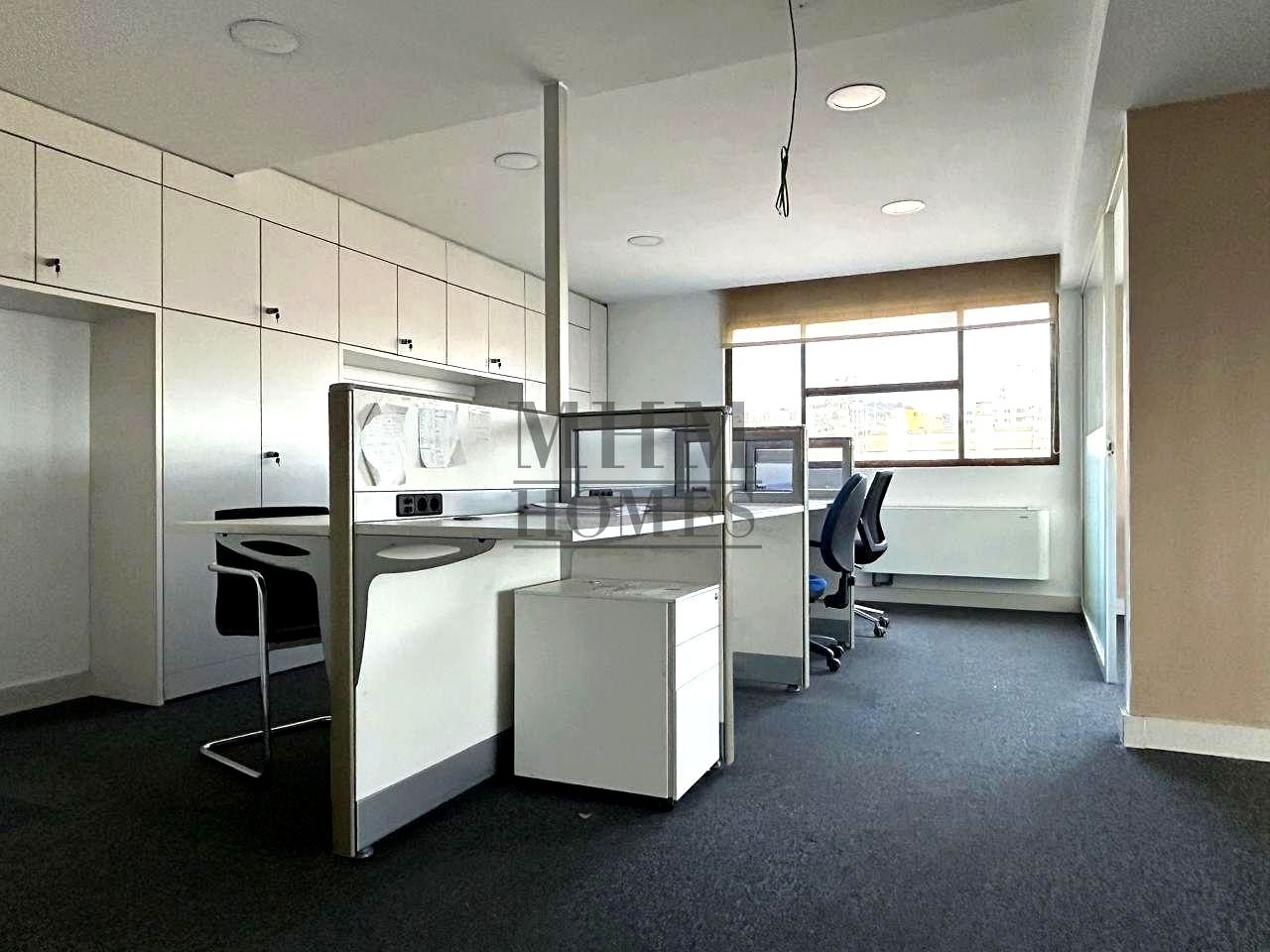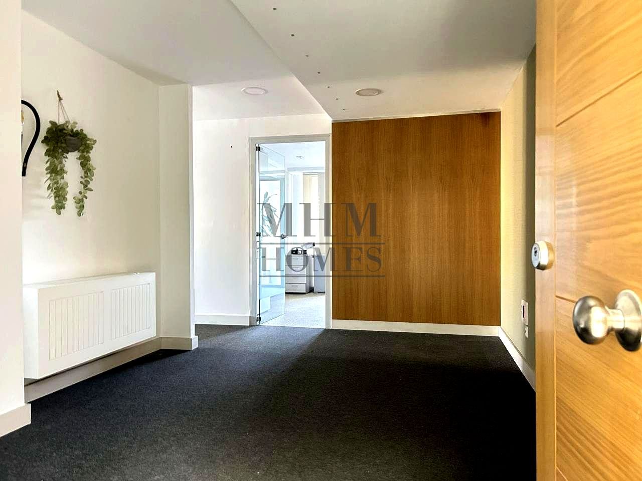 Se distribuye en : zona de bienvenida, dos amplios despachos , zona de office, almacén, zona de servidor , y una amplia sala de trabajo abierta….Un espacio versátil y fácil de re distribuir en caso de necesidad.